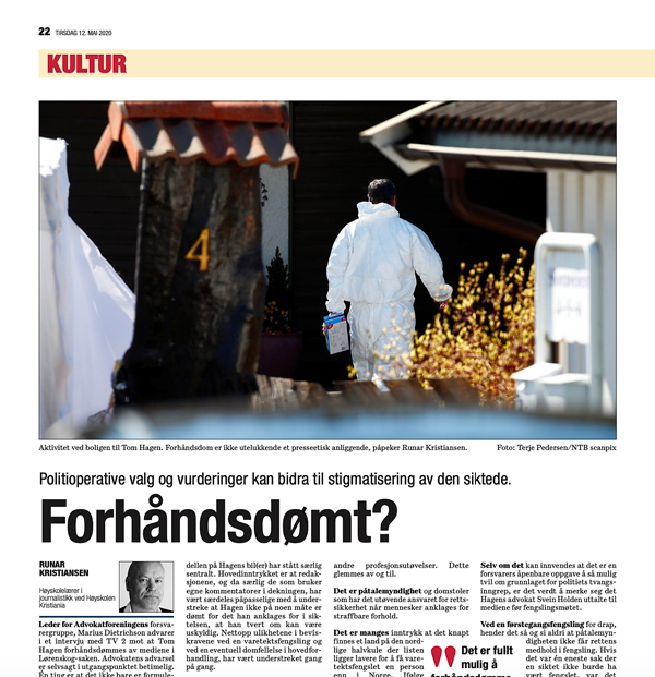 Som journalister skal vi passe oss for å felle forhåndsdom over en siktet eller tiltalt. Men også andre yrkesgrupper kan med fordel utvise varsomhet på dette punktet.