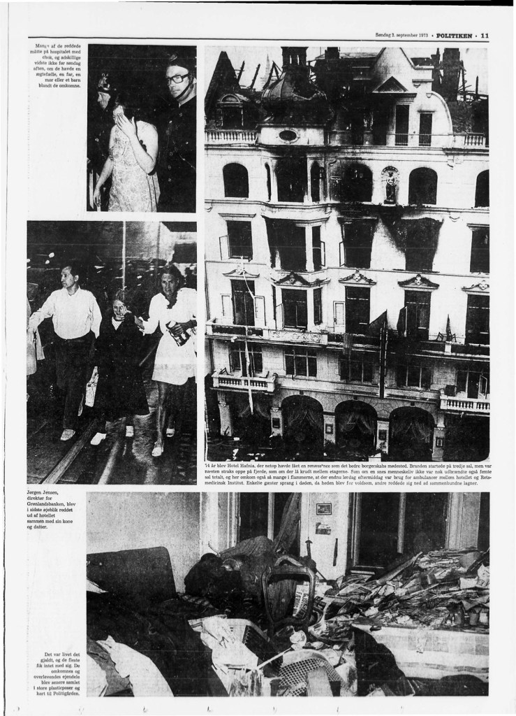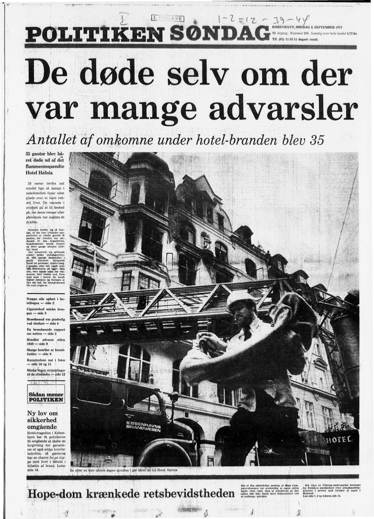 1. september 1973 sto Hotel Hafnia i København i fyll fyr. 35 personer omkom, blant disse fem barn. I Danmark omtales gjerne Hafnia-brannen som den verste mordbrannen i nyere tid, om man ser bort fra brannen i Scandinavian Star, der det jo er blitt stadig klarere at det dreier seg om en mordbrann.