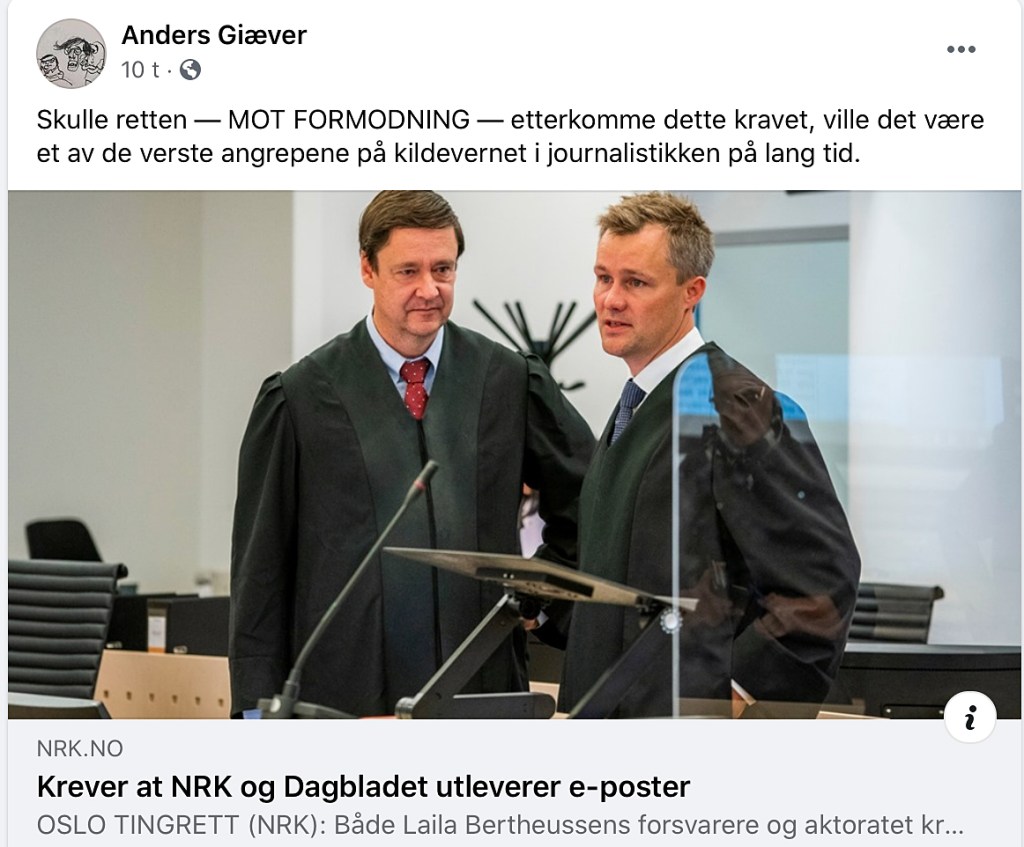 Laila Bertheussens forsvarere mener det er av betydelig for sakens opplysning at e-postene legges frem i retten, og viser i den forbindelse til at kildevernet ikke er absolutt i norsk rett.