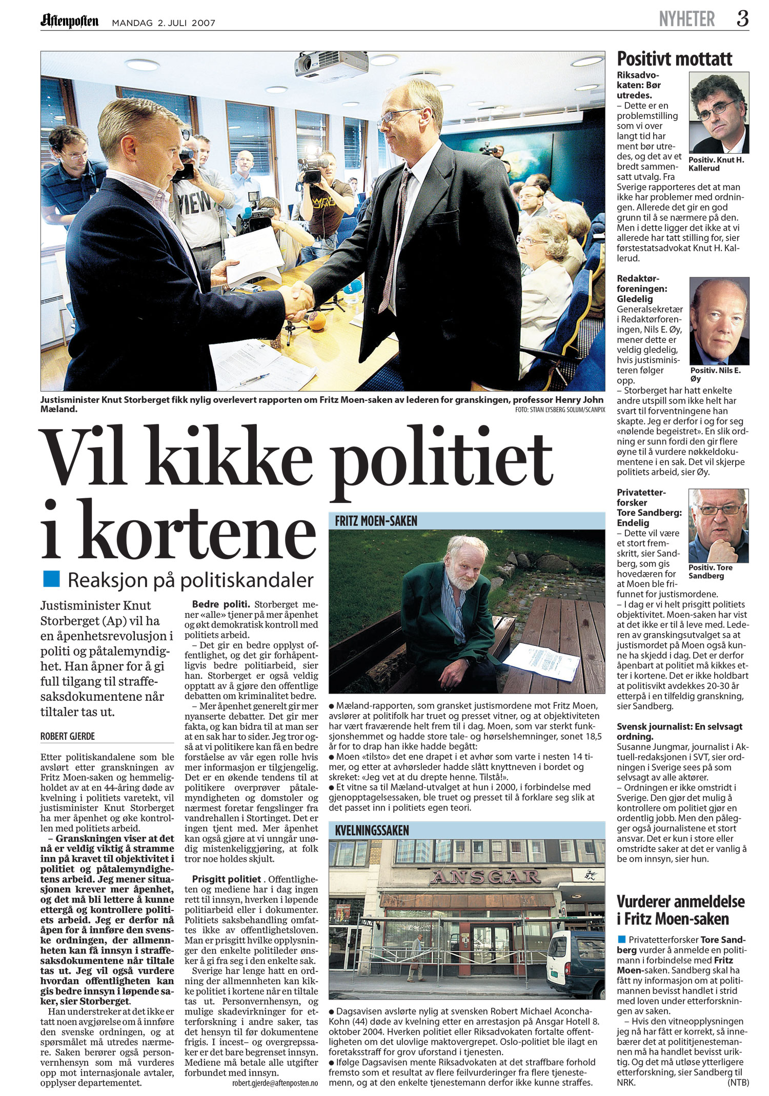 -Jeg mener situasjonen krever mer åpenhet, og det må bli lettere å kunne ettergå og kontrollere politiets arbeid. Jeg er derfor nå åpen for å innføre den svenske ordningen, der allmennheten kan få innsyn i straffesaksdokumentene når tiltale tas ut.